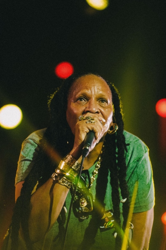 O dub e reggae, já presentes no som dos baianos, ganharam corpo para uma passagem rápida, mas potente da cantora. Aos 63 anos, fez uma performance marcante em três músicas que levaram o público a mais comoção.