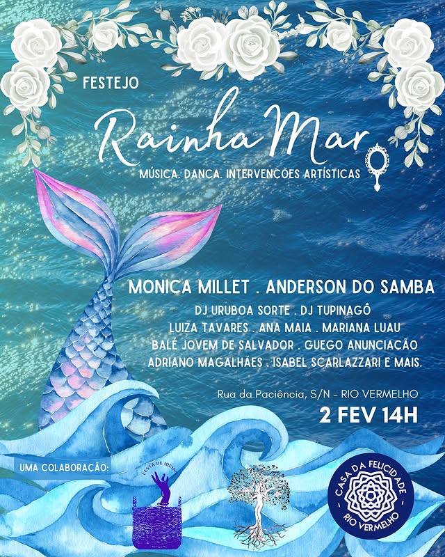 Dia 01 de fevereiro a banda Samba de Pretas celebra as águas de Yemanjá com um show especial no Rio Vermelho. Samba de Pretas leva no seu nome a ancestralidade e força feminina negra, a banda unifica a elegância e a força do samba de mesa, traz um repertório que celebra as matrizes africanas perpassando pelo samba de roda, pagode baiano, o samba raiz e releituras de músicas da MPB.