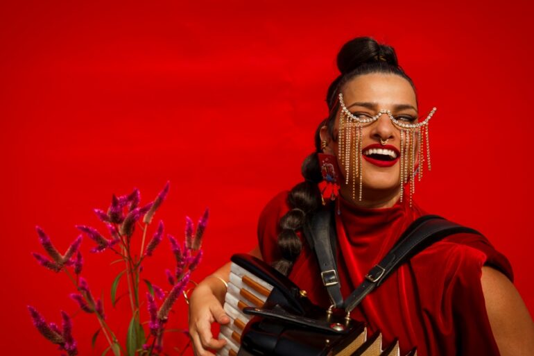 A cantora, compositora e sanfoneira Lívia Mattos fecha trilogia e expande linguagem do trio com sanfona, tuba e bateria em seu novo álbum, Verve.