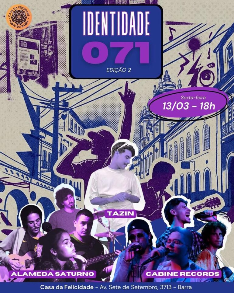 Para esta edição da festa, o público poderá acompanhar uma sequência de apresentações que percorre diferentes sonoridades. A noite começa com a Alameda Saturno, segue com o show autoral da Cabine Records e se encerra com a apresentação de Tazin, em um percurso musical que transita entre indie e rap. Neste início de trajetória, a realização da Identidade 071 representa um passo importante para o coletivo. Segundo os integrantes da Cabine Records, a ideia é fortalecer o contato com o público e ampliar a presença na cena musical local.
