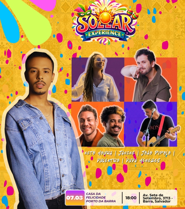 O verão ainda pulsa em Salvador e a folia ganha mais um capítulo especial no dia 07 de março, com a realização do Sollar Experience, na Casa da Felicidade, na Barra. O evento chega como uma extensão da energia carnavalesca, reunindo artistas, lançamentos e encontros musicais em uma experiência que promete marcar o calendário cultural da cidade.