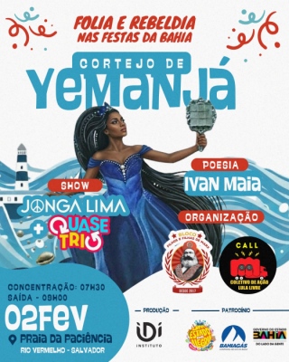 O projeto Folia e Rebeldia integra música, poesia e crítica social e na Festa de Yemanjá traz show de Jonga Lima & Quasetrio e a poesia de Ivan Maia, além de contar com desfile do Bloco Filhos e Filhas de Marx e do CALL (Coletivo de Ação Lula Livre).