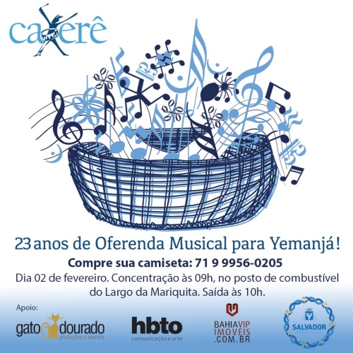 Comemorando 23 anos, a tradicional e pioneira Oferenda Musical do Caxerê para Yemanjá volta este ano com um cortejo de mais de 70 percussionistas.